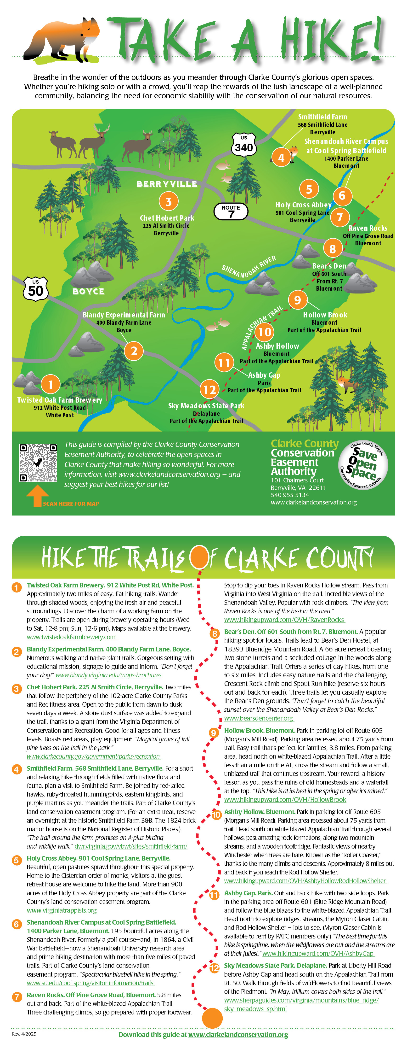 Go outside and TAKE A HIKE! You won’t regret it. Use the map below to help plan your route. Thanks to our glorious open space, you have lots of options in Clarke County.
